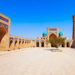 Plac Registan (Samarkanda): Najsłynniejszy zespół medres w Azji, serce Jedwabnego Szlaku.