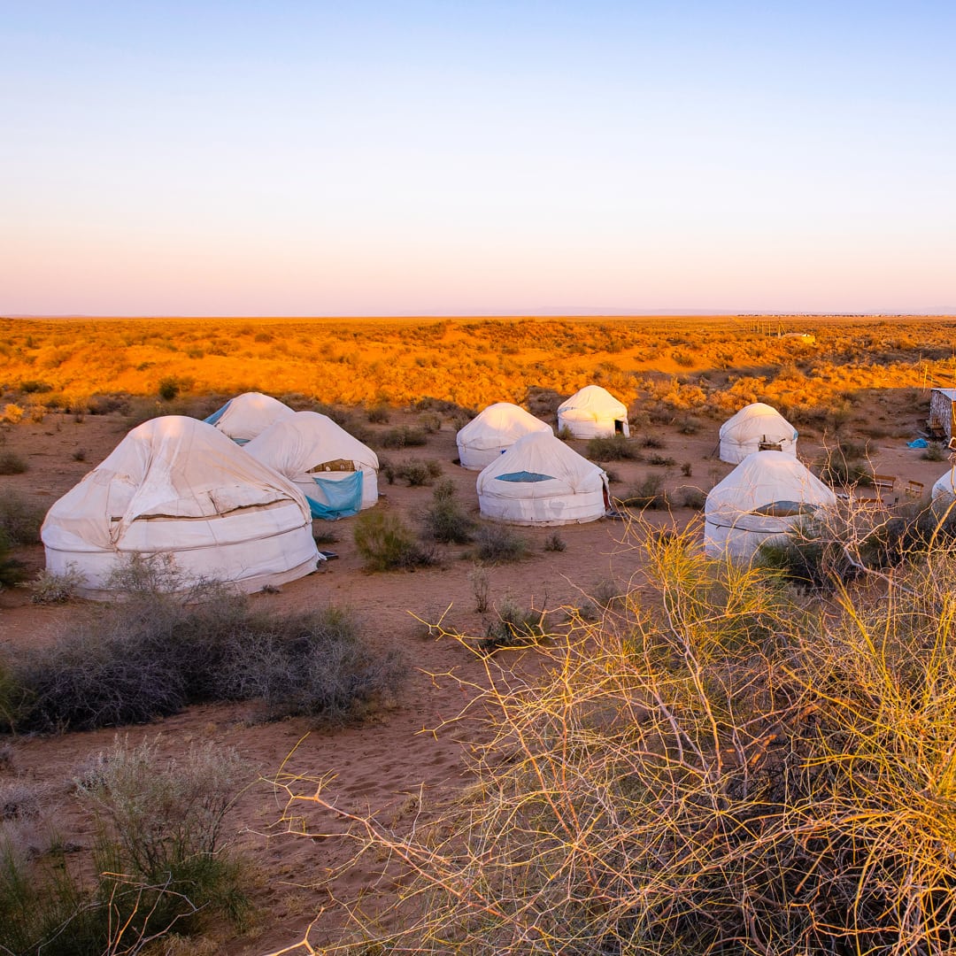 Pustynia Kyzył-kum: Przejazd przez „Czerwone Piaski” i nocleg w tradycyjnych jurtach.
