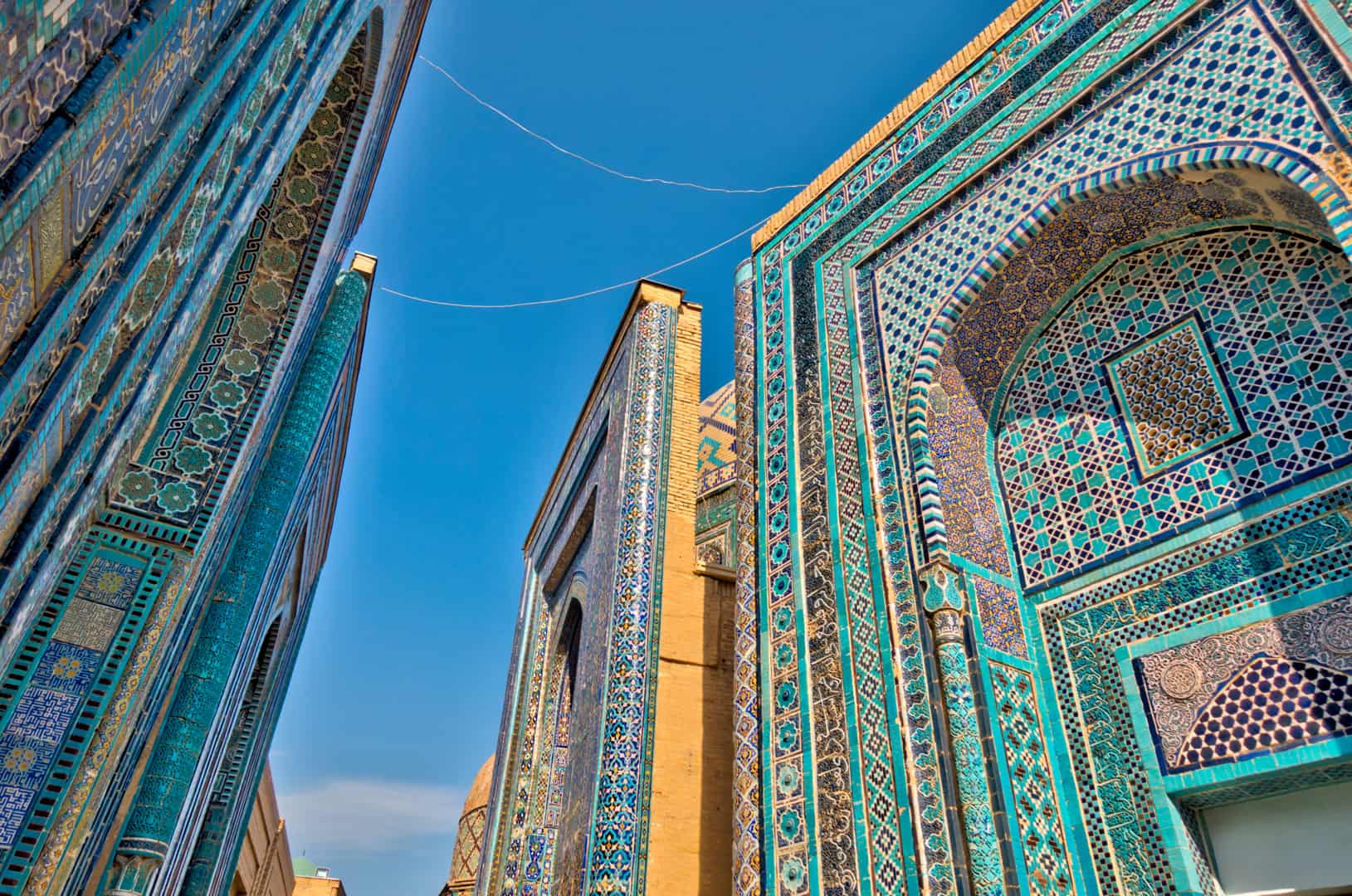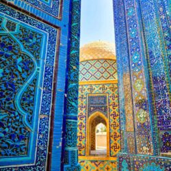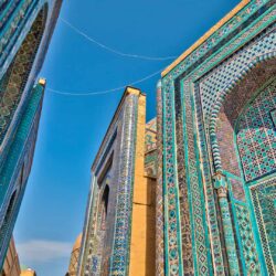 Nekropolia Shahi Zinda: „Aleja Mauzoleów” o zachwycających, turkusowych mozaikach.